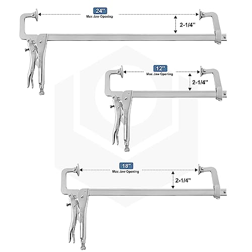 MAXPOWER Heavy Duty Locking C-Clamp Set 6-Inch, 9-Inch,11-Inch, 3-Piece Locking Pliers Nickel Plated C Pliers With Regular Tip and Swivel Pads