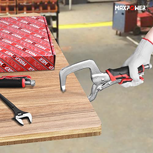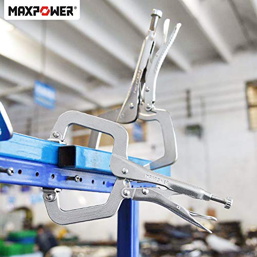 MAXPOWER 11-inch Locking C Clamp Set, 2 Pack Heavy Duty Locking Pliers with Regular Tip for Welding and Woodworking