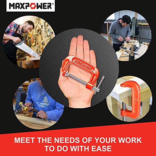MAXPOWER 2 Inch C-clamp, 12 Pieces C Clamps Set, 2-Inch Jaw Opening, Throat Depth 1-3/16-Inch