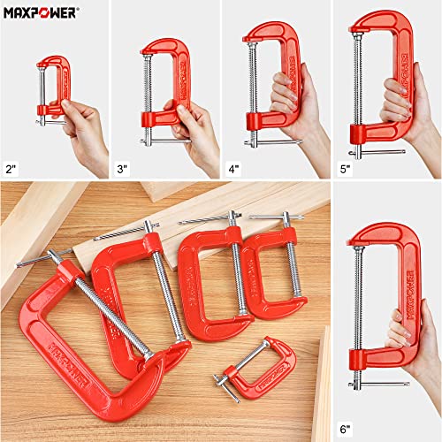 MAXPOWER 4" 5" 6" C Clamp Set, Small Clamps for Woodworking and Welding