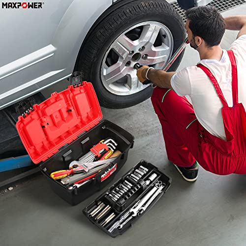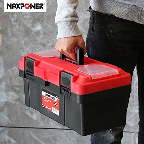 MAXPOWER 17-Inch Tool Box, Plastic Tool Boxes with Removable Tray & Dual Lock Secured, Rated up to 33 Lbs