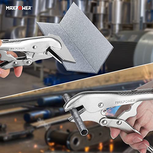 MAXPOWER 4PCS Locking Pliers Clamp Set, 7 inch 90 degree Offset Locking Pliers, 7 inch Locking Pinch Off Pliers, 9 inch U Shaped Jaw Locking Pliers, 8 inch Locking Sheet Metal Clamp