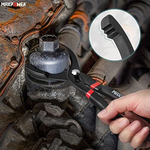 MAXPOWER Oil Filter Wrenches Set, 12 inch Oil Filter Pliers, 3 Jaw Adjustable Oil Filter Wrench Removal Tool, 3 inch Extension Bar, 1/2" F to 3/8" M Adapter