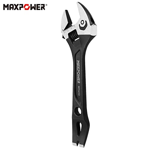 MAXPOWER 12-inch Adjustable Wrench, 3-in-1 Multifuntional Demolition Wrench Spanner with Hammer Face and End Pry Bar Functional